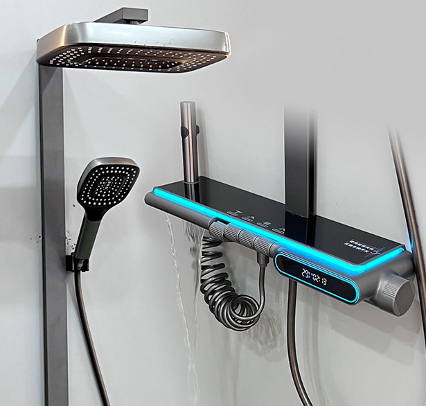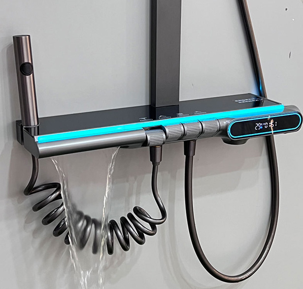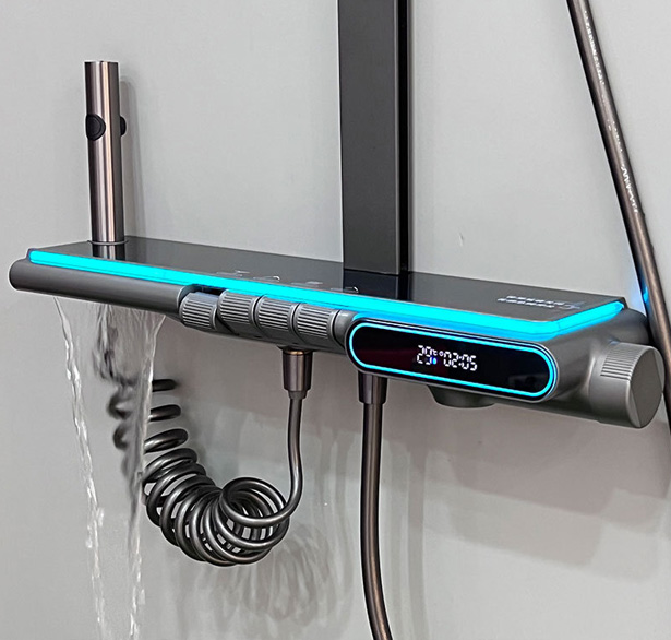 全套枪灰色智能恒温淋浴花洒套装酒店水镀数显钢琴氛围灯花洒