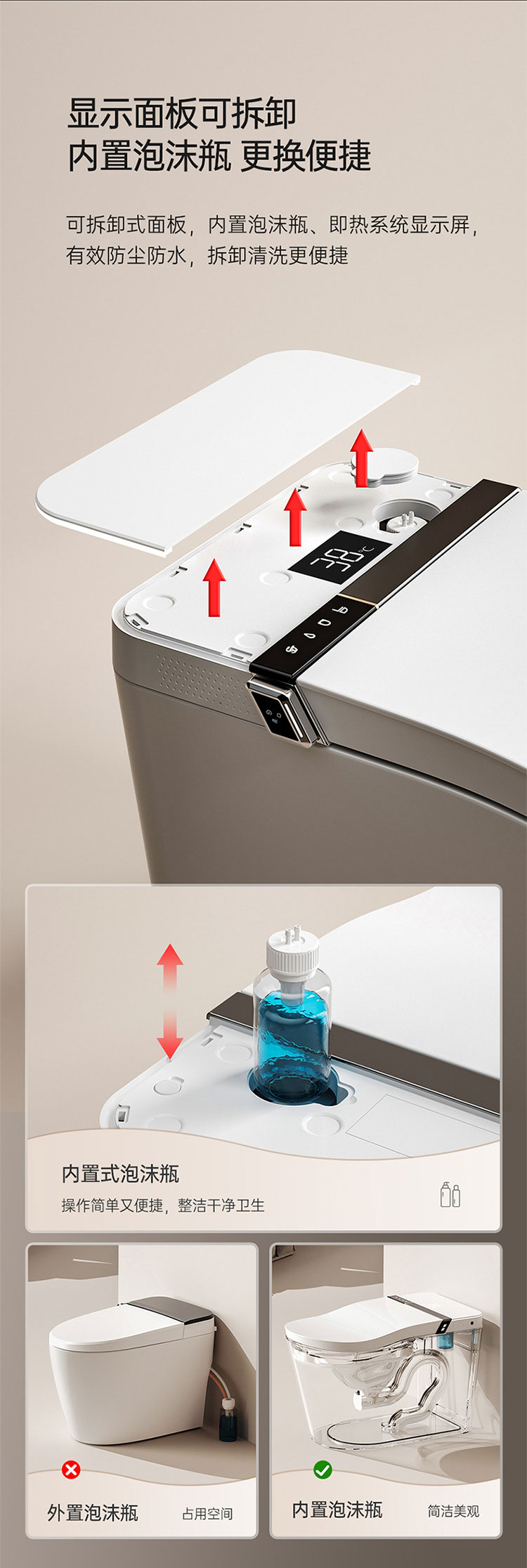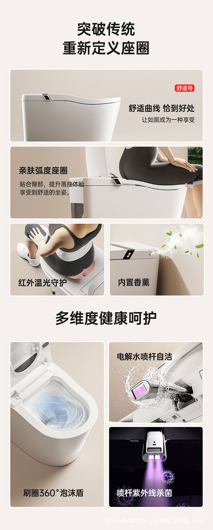 智能马桶现代简约一体式家用全自动感应式即热翻盖冲水虹吸坐便器
