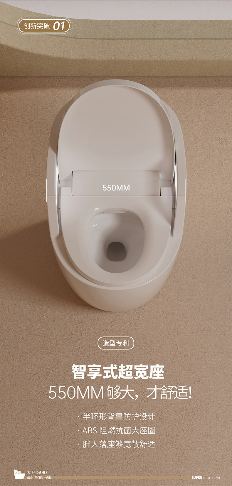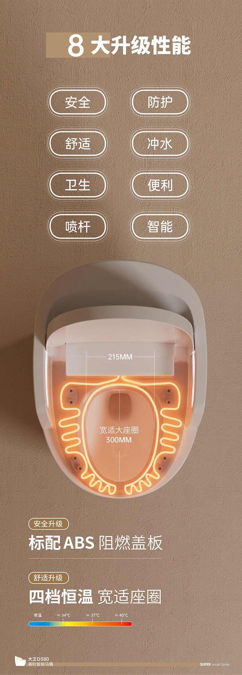 全自动无水压限制智能马桶 超宽座设计加热高速烘干AI语音坐便器